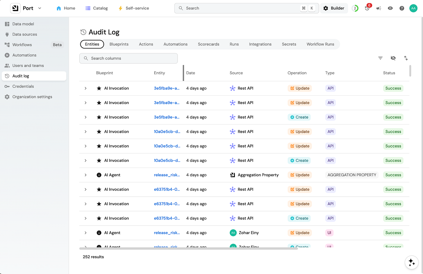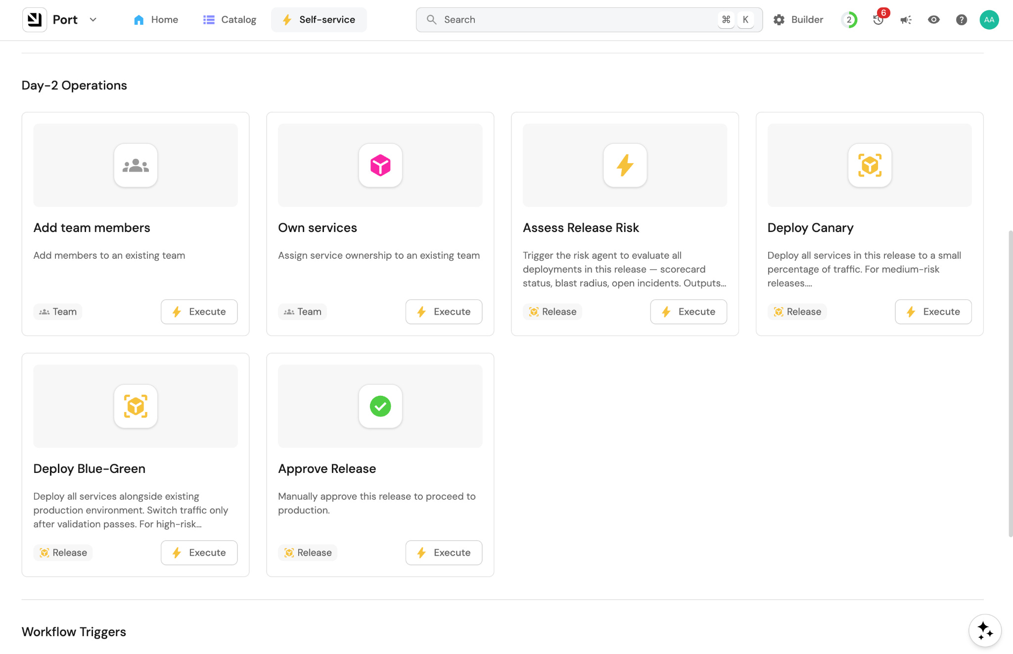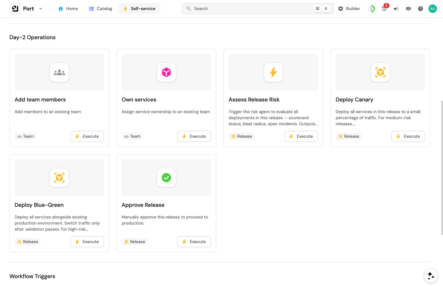 Port is built for platform engineers stepping into this new role who want to build a win-win experience. It gives your team the foundation to give developers the building blocks they need in their new builder role: governed data, pre-cleared integrations, approved actions, approval gates, and more.