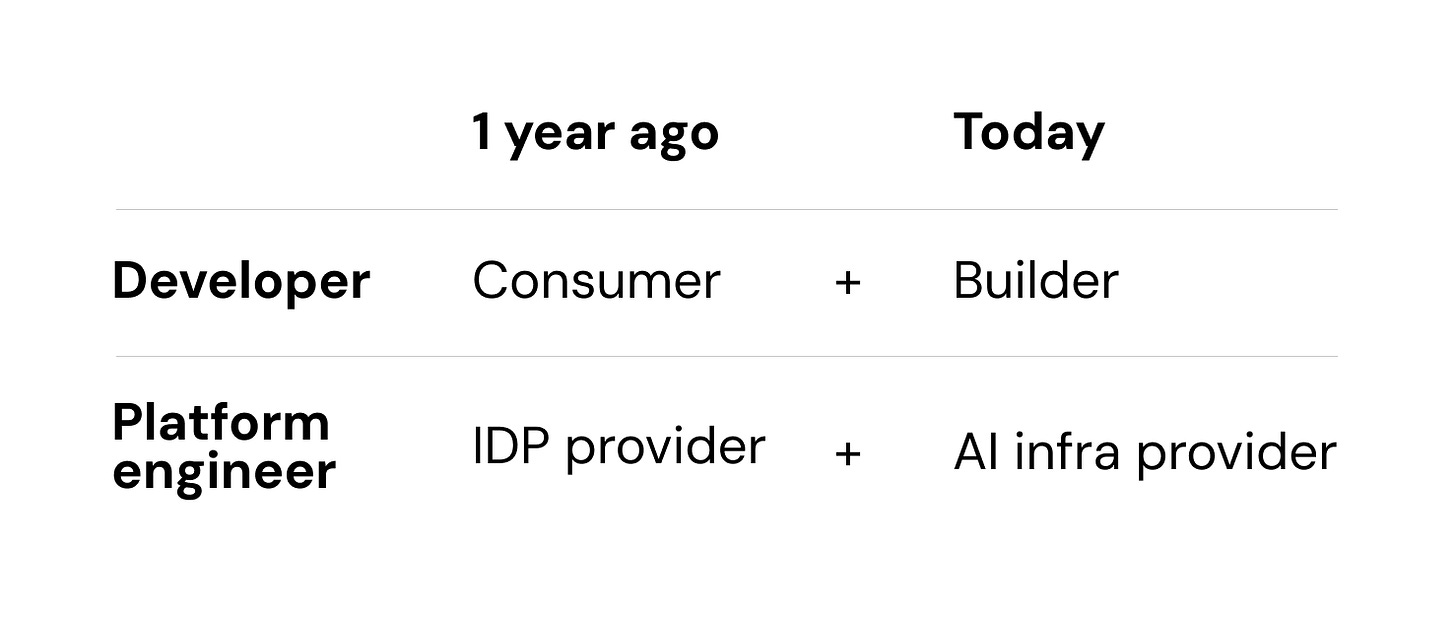 With AI, developers became builders of agentic workflows. By building agents, they can automate large parts of their jobs. They’re building SRE agents, release agents, skills, etc. They already got permission to use all these AI tools, so they started to stitch stuff together.