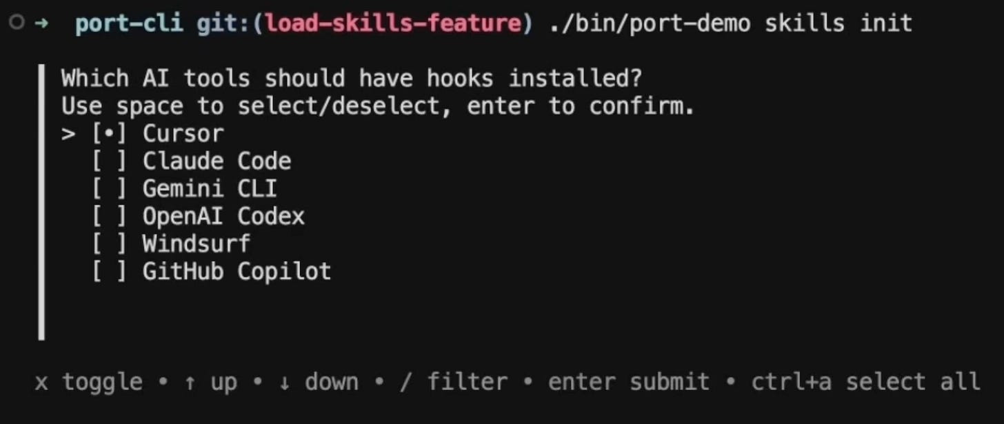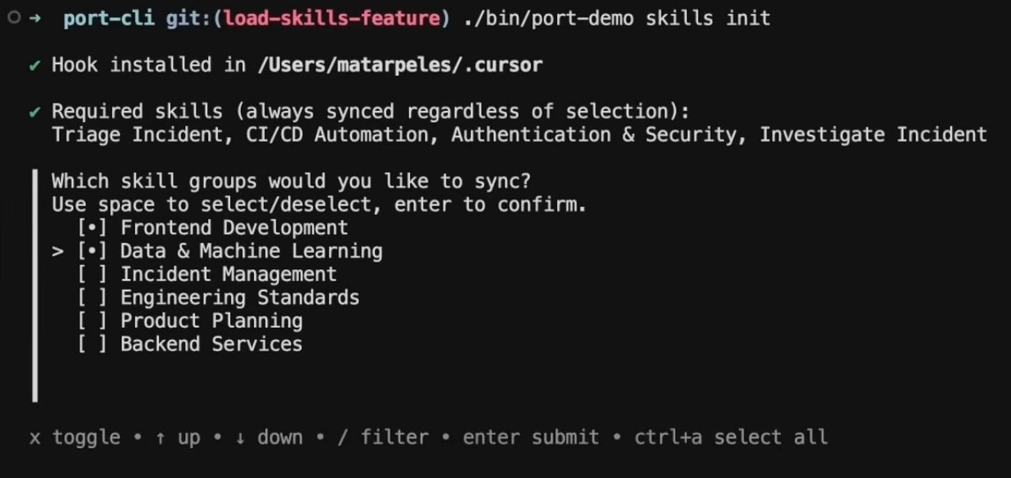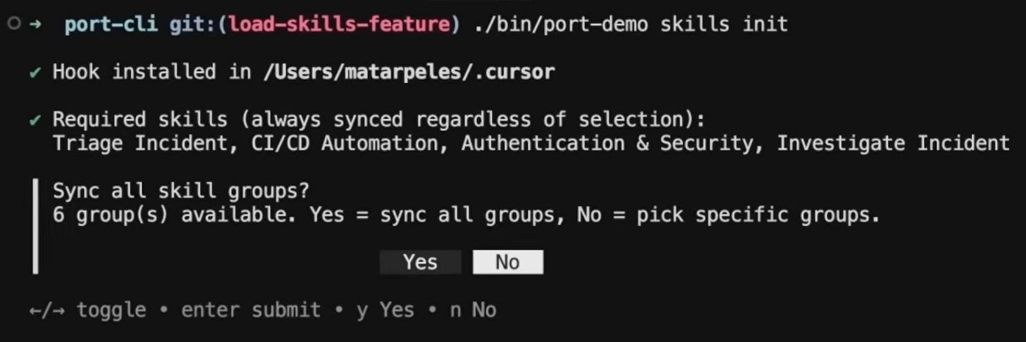 First, updates. Every engineer in Cursor has an automation that listens for changes to skills in Port and pulls new required skills and updates existing ones.