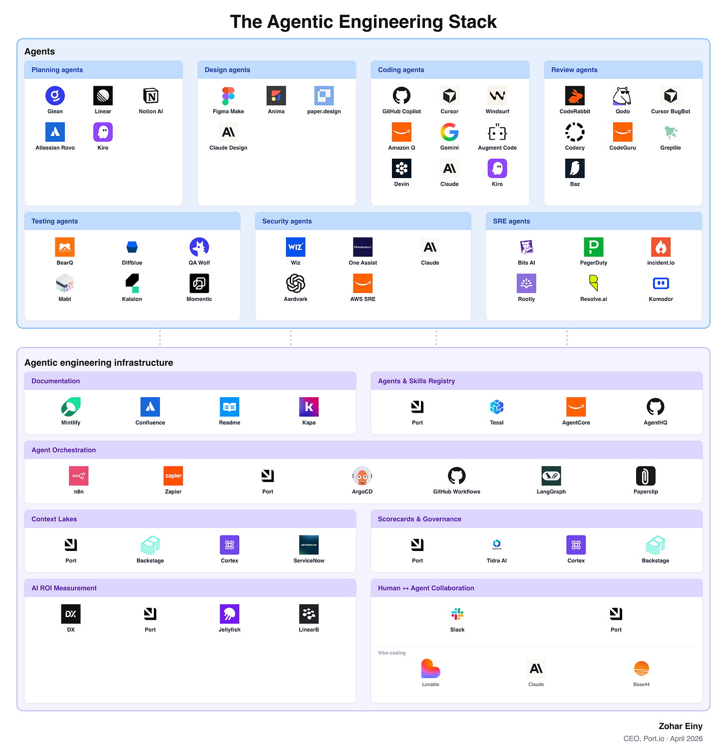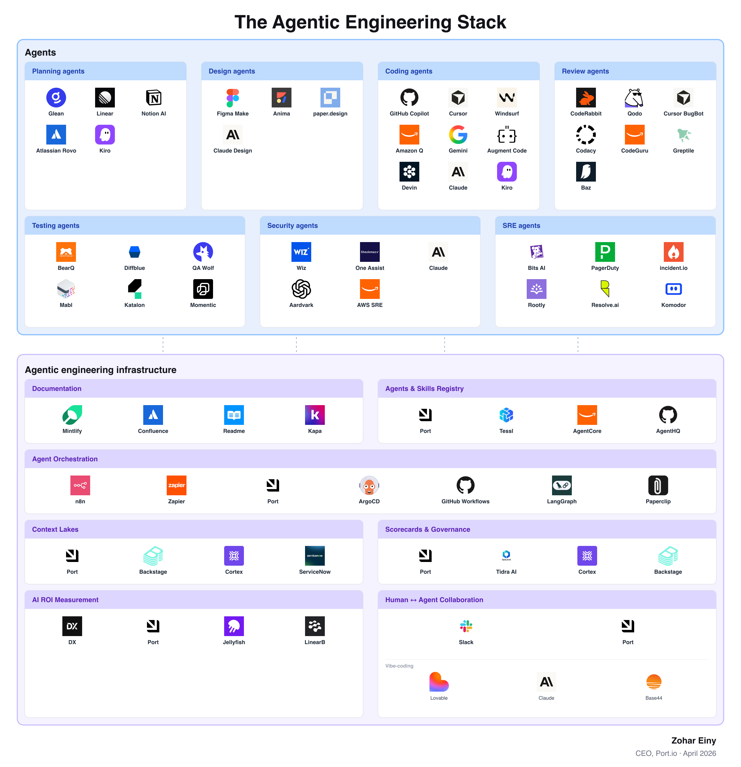 You might ask: why is Port in so many categories? That’s because platform engineers and platform engineering will be critical to building out the agentic engineering infrastructure blocks. It may not be fully clear to everyone yet, but based on what our customers tell us every day, controlling agentic chaos and agent sprawl will 100% be the platform team’s responsibility.